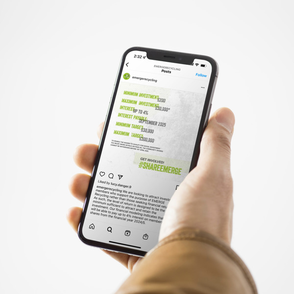 EMERGE Recycling is a community benefit society who offered shares to individuals and organisations who supported their mission.